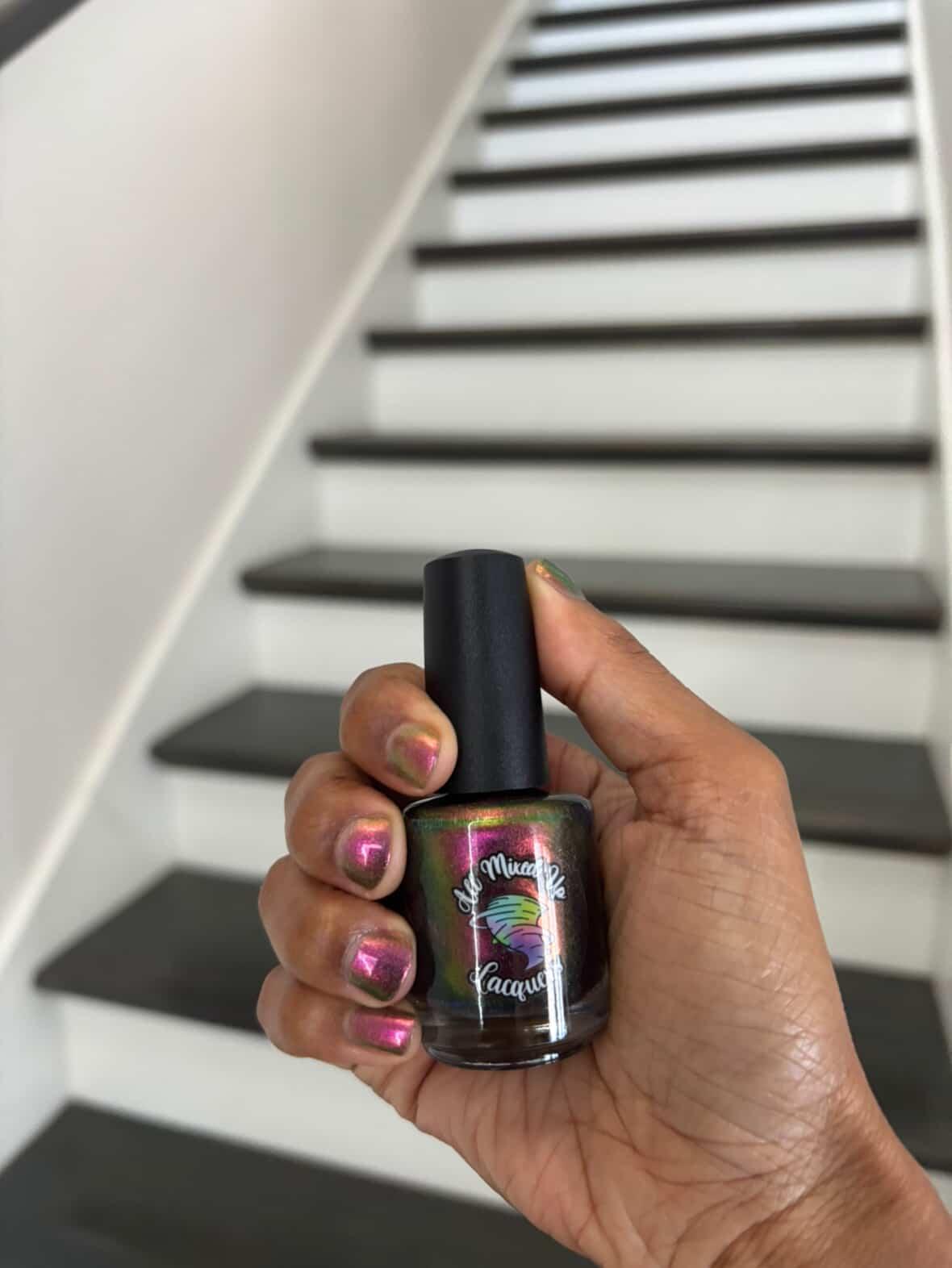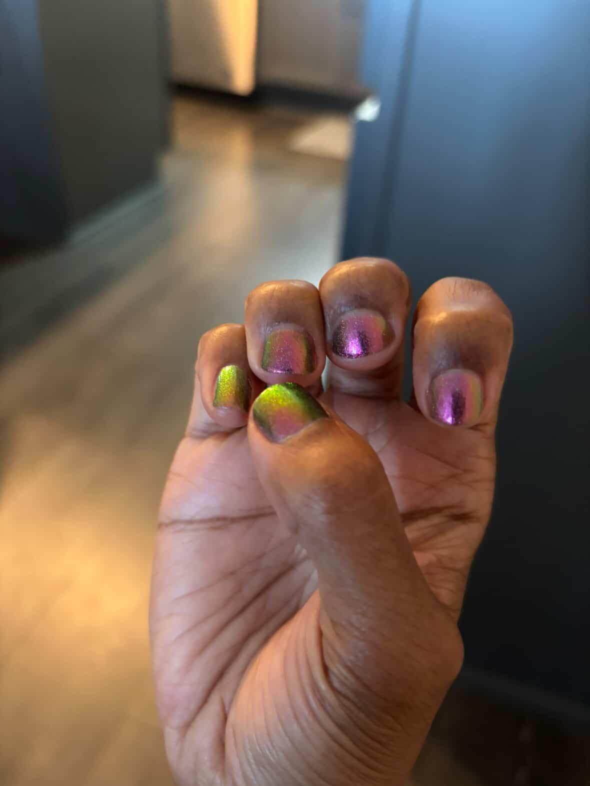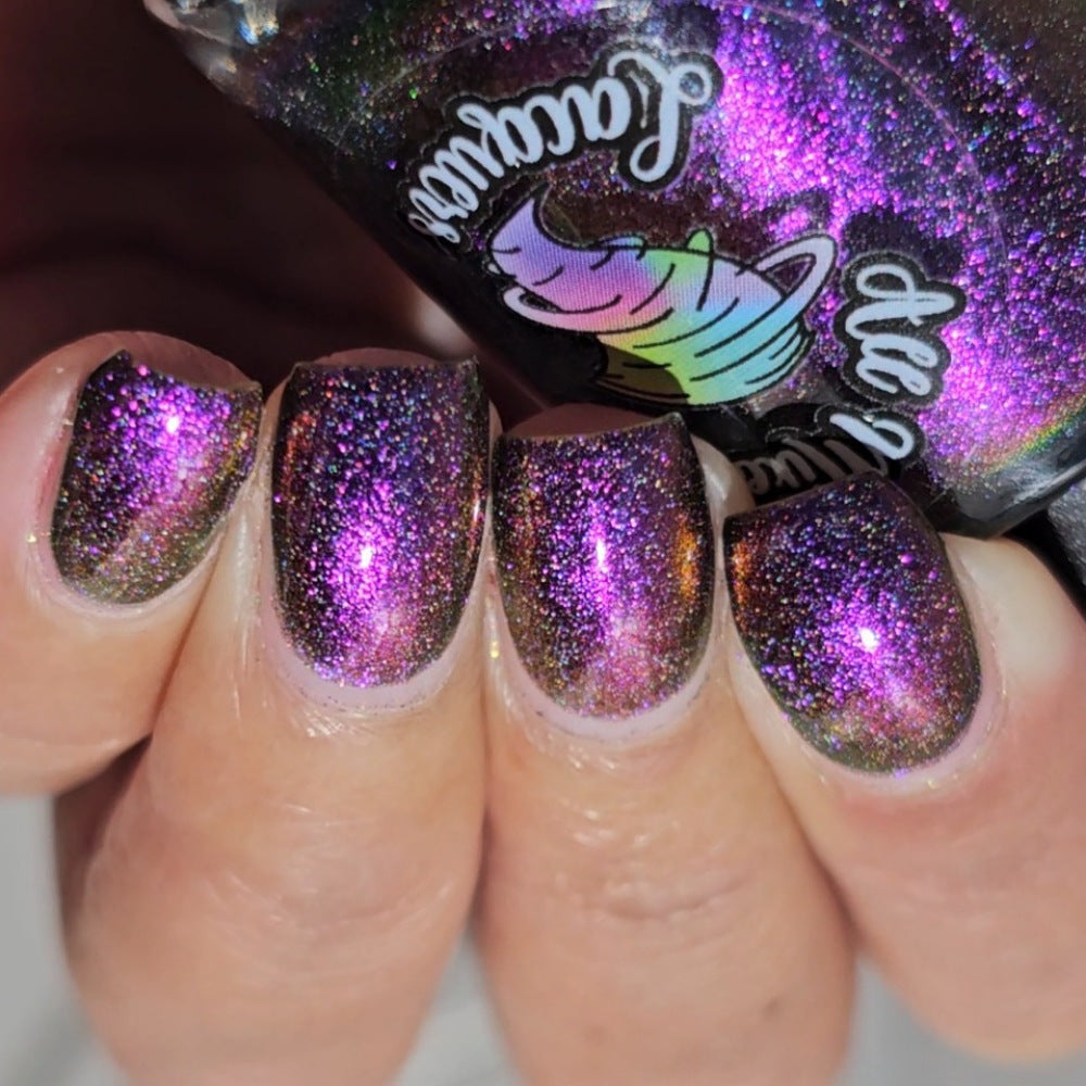 “Bite Me” - scattered holographic multichrome with a fuchsia/copper/green shift